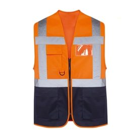 /Yüksek Görünürlüklü Ürünler (Hi-Vis) /Mühendis Yeleği Neon Turuncu - Lacivert